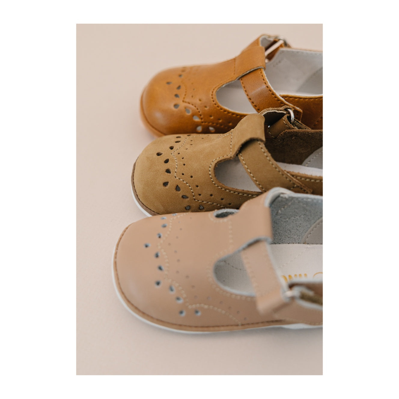 Birdie is our long time classic and favorite t-strap style for babies and tots. Fine stitching and darling bead shaped perforated design make this shoe absolutely irresistible.
